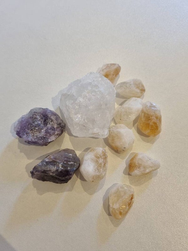 Die Sondermischung für Lebensmut und Hoffnung enthält die Steine Citrin, Bergkristall und Amethyst. Zu dieser Zusammensetzung gibt es positive Erfahrungen bei Burnout und Depressionen.