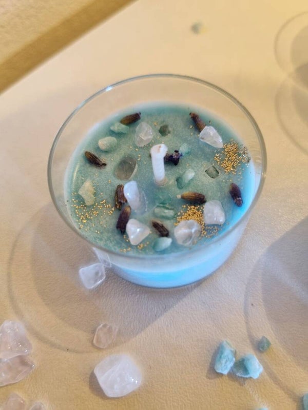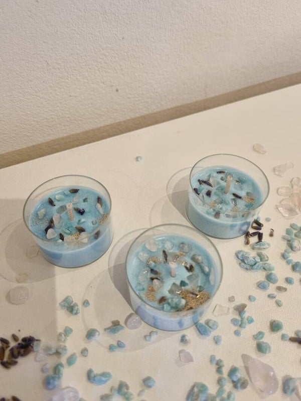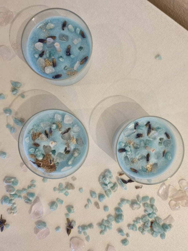 Lass das Licht der Eiskönigin in deinem Zuhause erstrahlen. Das Set aus 3 handgefertigten Teelichtern Eiskönigin enthält Amazonit und Rosenquarz in Splitterform. Der angenehme Vanilleduft und Lavendelblüten sorgen für Harmonie.